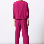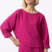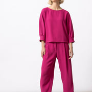 Minimalistisch en verfijnd. Deze fuchsia top is uitgevoerd in een van onze favoriete materialen: soepel Japans polyester met een elegante, vloeiende valling. Een tijdloos stuk dat moeiteloos chic blijft, dag én avond.