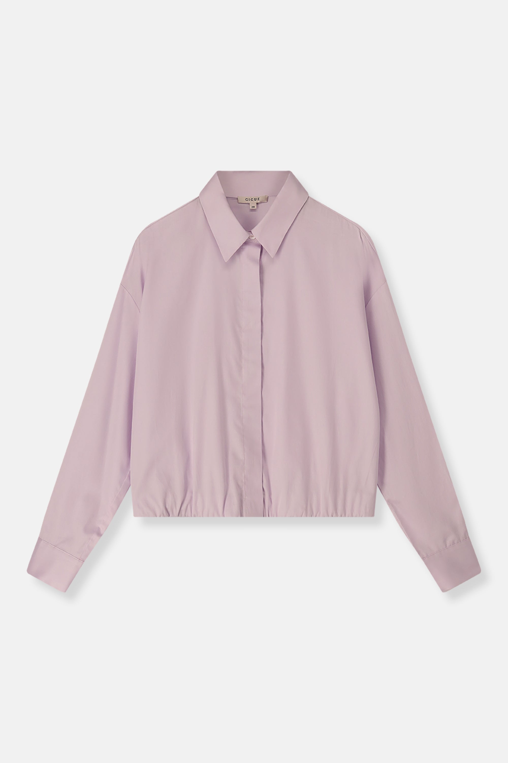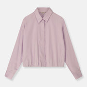 De Hidem bloes in lila is uitgevoerd in soepel katoen met een licht bomberachtig silhouet. De elastiek in de taille zet het volume gecontroleerd neer en geeft het stuk zijn moderne proportie. Zacht in kleur, scherp in vorm.