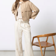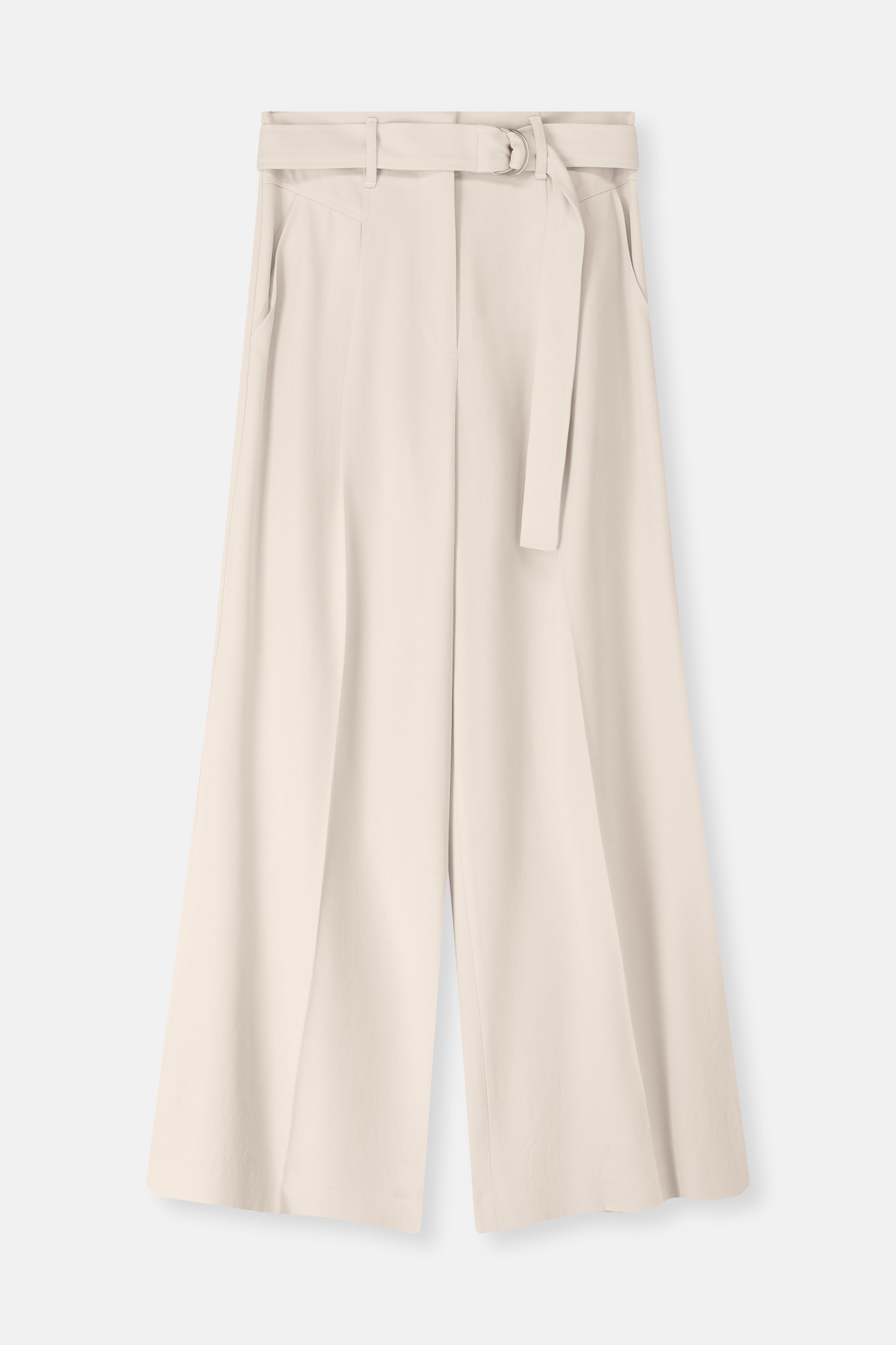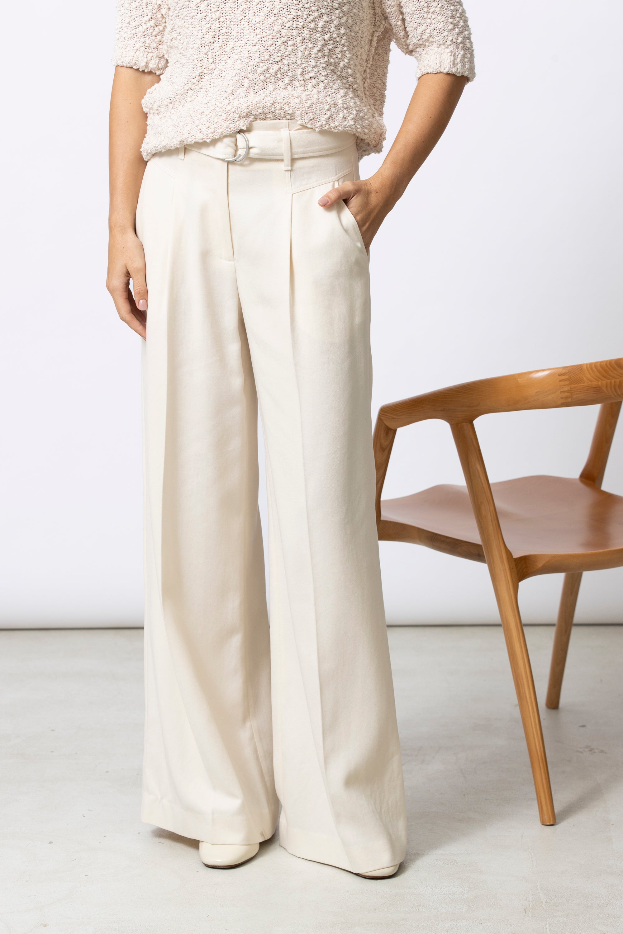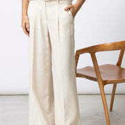 Elegante, wijde broek met hoog tailleaccent en vloeiende lijnen. In tijdloos ecru wordt deze broek een veelzijdige essential: chic, licht en eindeloos combineerbaar.