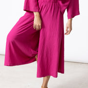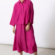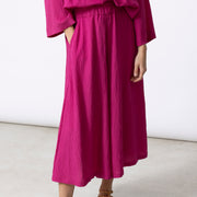 Door het vloeiende volume en de lengte oogt TYFEN als een rok, met het comfort van een broek. De shiny wrinkle stof geeft beweging en een elegante nonchalance. Draag hem als set met de HATORI bloes of solo, even sterk.