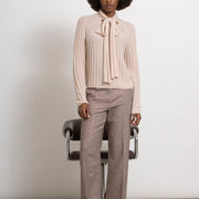 Broek in klassiek visgraatmotief met subtiele lurex. De tijdloze snit en elegante lengte maken dit een stijlvol basisstuk. Combineer met de bijhorende WATCHA jasje voor een chic broekpak. Het model is 1m80 en draagt maat 36.