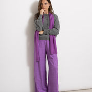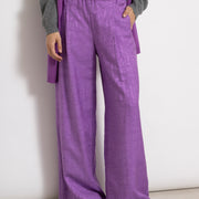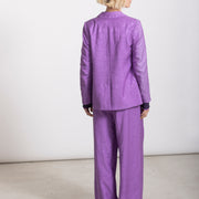 Paarse broek met subtiel moiré-effect. De elastische taille en de elegante plooi op het been geven dit klassieke model een moderne twist. Combineer met de WETY blazer in dezelfde stof voor een stijlvol tailleur.
