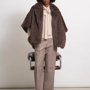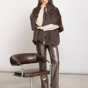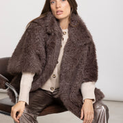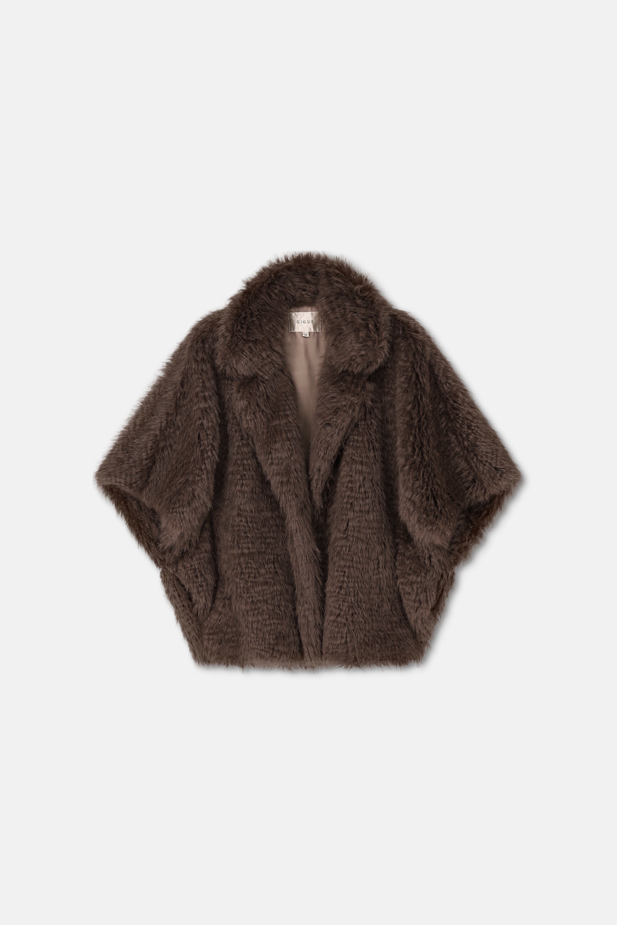 Deze korte fake fur cape-jas in warme taupekleur is tijdloos, modieus en heerlijk zacht. Het veelzijdige model draag je moeiteloos over elke outfit, van casual tot gekleed.
