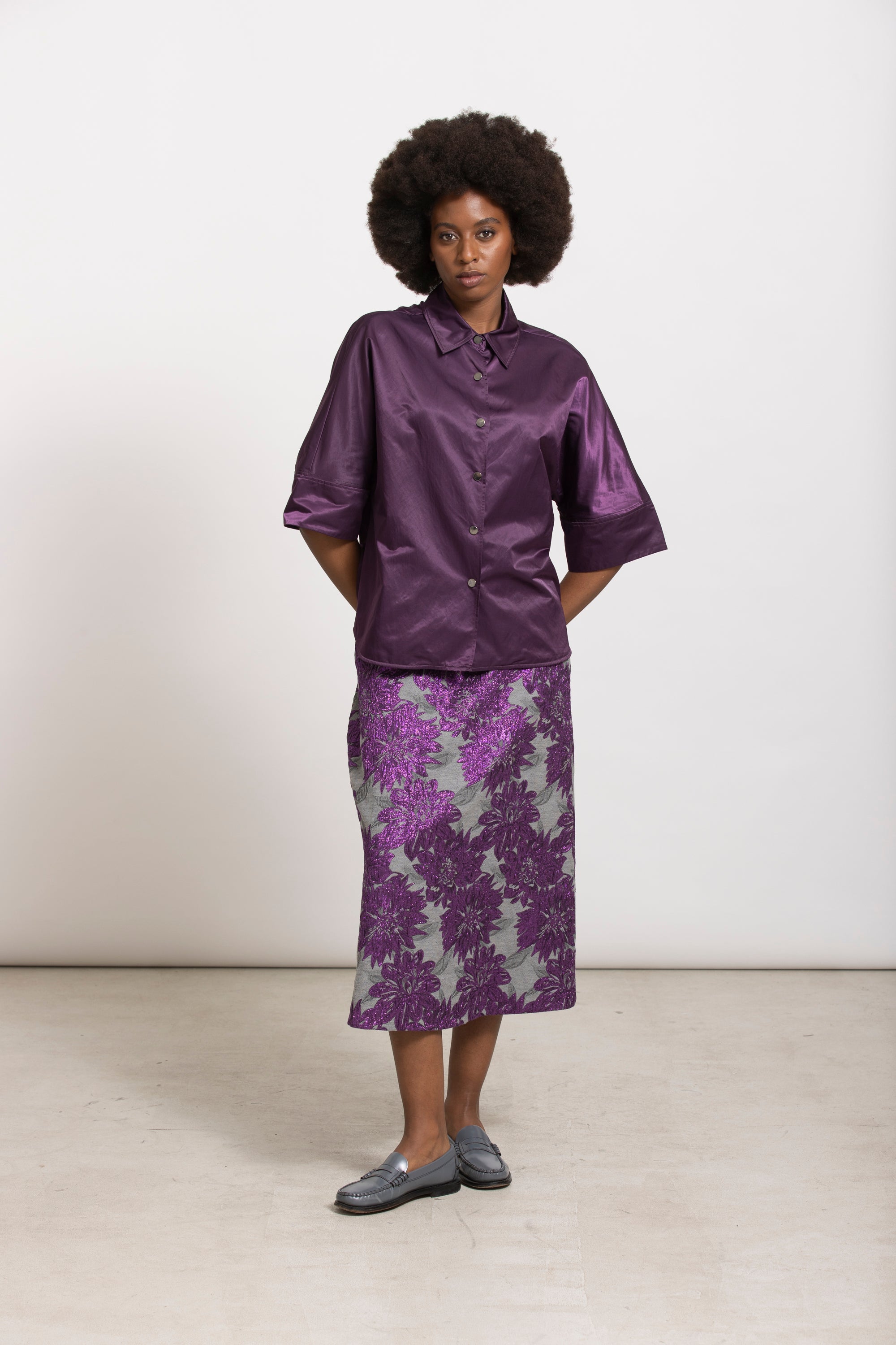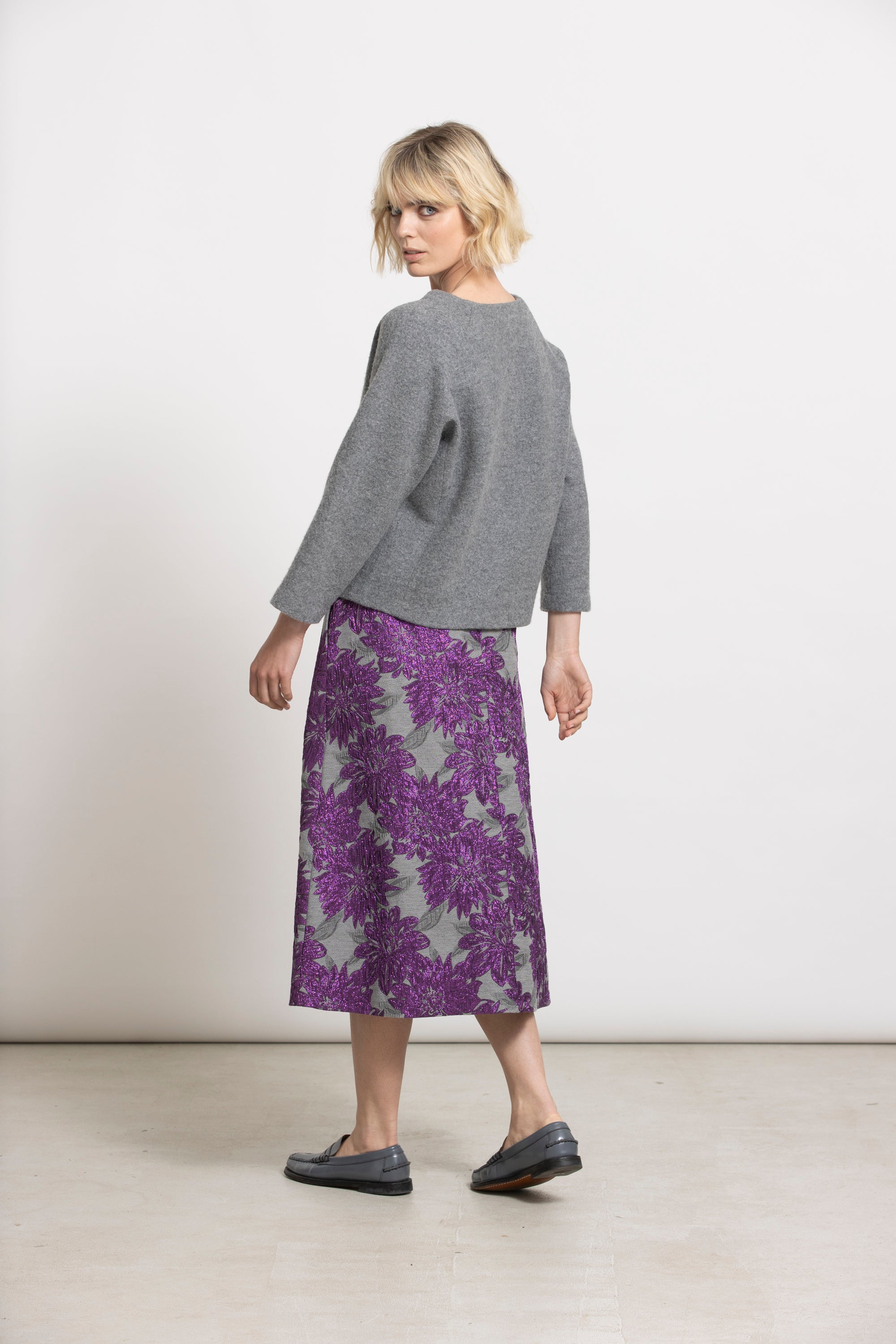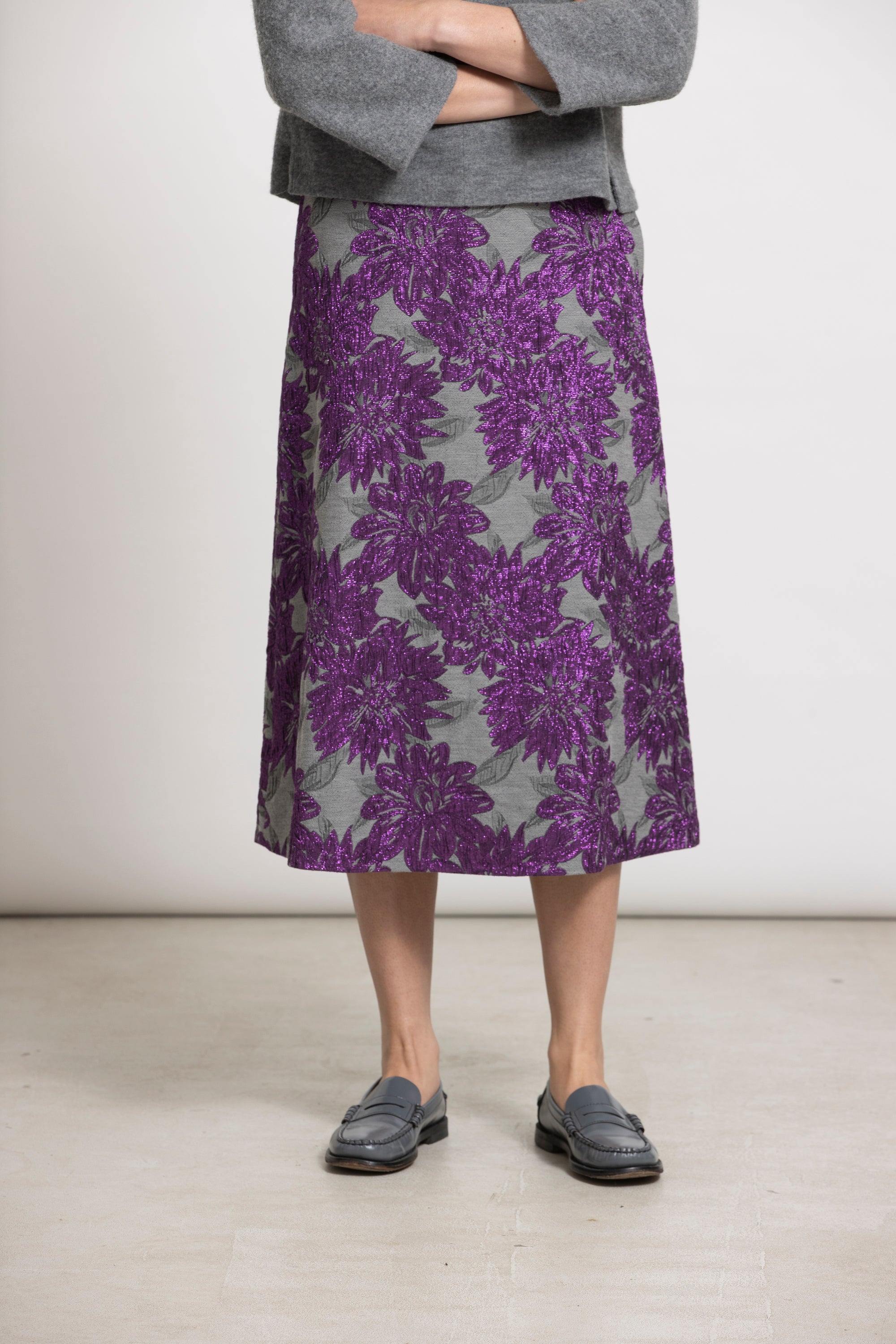 A-lijn rok in een exclusieve jacquard met bloemenmotief, speciaal ontworpen voor Gigue. Het lichte, eenvoudige model draag je moeiteloos elke dag. Combineer met het WINT jasje in dezelfde stof voor een complete look.