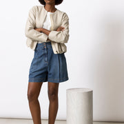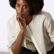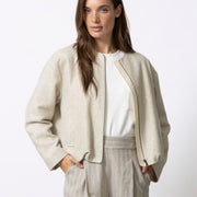 Kort bomberjasje met een subtiele lurexdraad die zorgt voor een zachte glans. WARD combineert een sportieve snit met een verfijnde uitstraling. Makkelijk draagbaar, met net dat beetje extra.