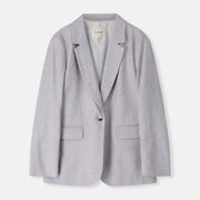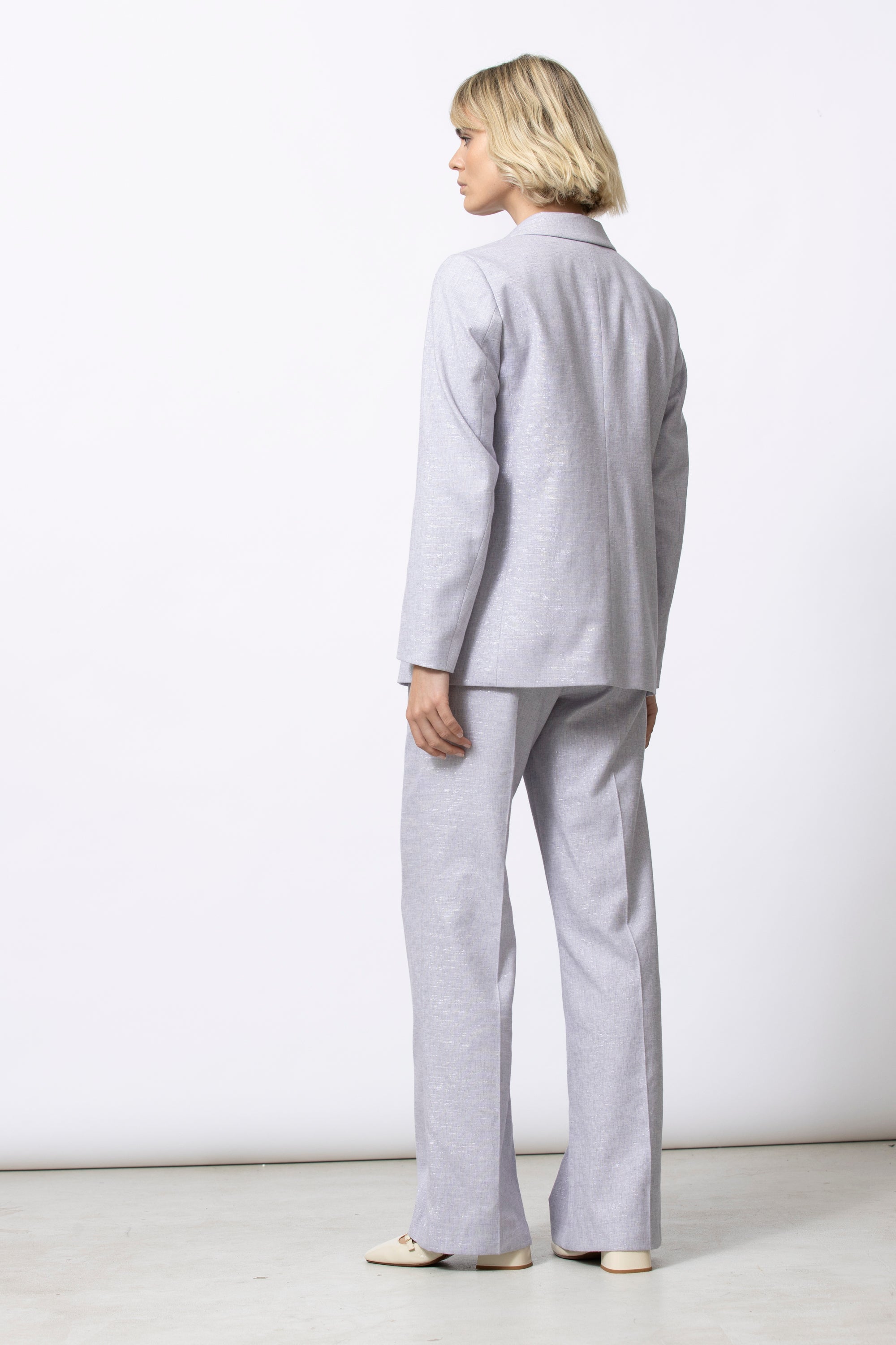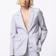 Relaxed blazer met rechte, comfortabele snit in een subtiel glanzende stof. De blazer draagt soepel en is perfect als zomers pak in combinatie met de bijpassende broek, maar werkt evengoed los gestyled.
