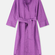 Paarse jurk in subtiel toon-op-toon moiré met een elegant wijder volume. Je kan de taille vrouwelijk accentueren met de bijpassende riem. Een veelzijdig model dat zowel gekleed als casual gedragen kan worden.
