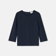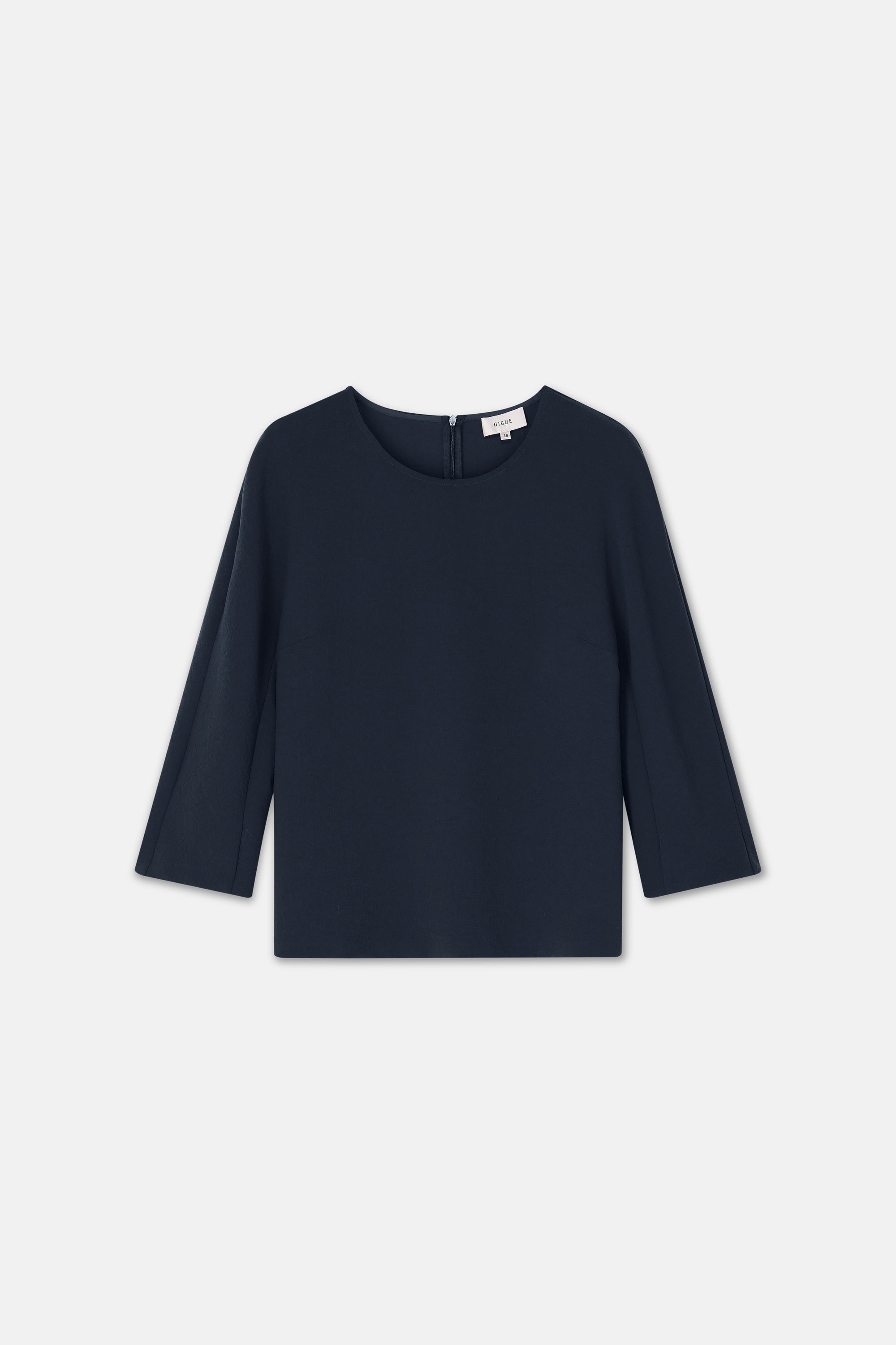 Stijlvol, makkelijk en chique: deze mooie, eenvoudige navy bloes in soepele polyester valt altijd mooi én moet je niet strijken. Te combineren met dezelfde RELAM broek.