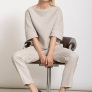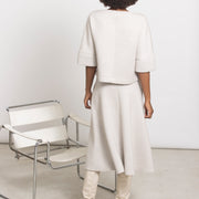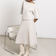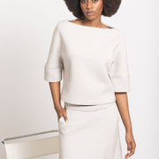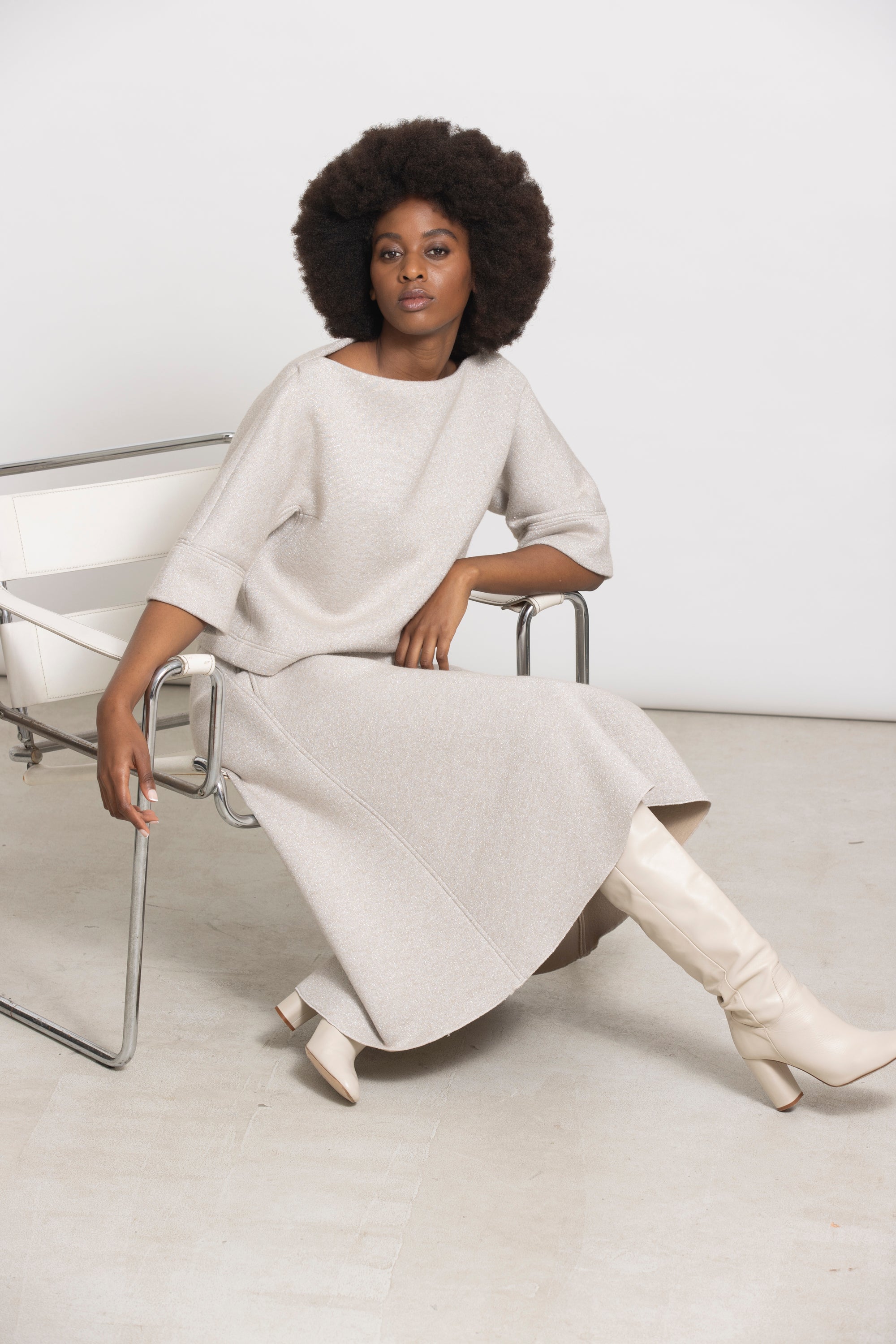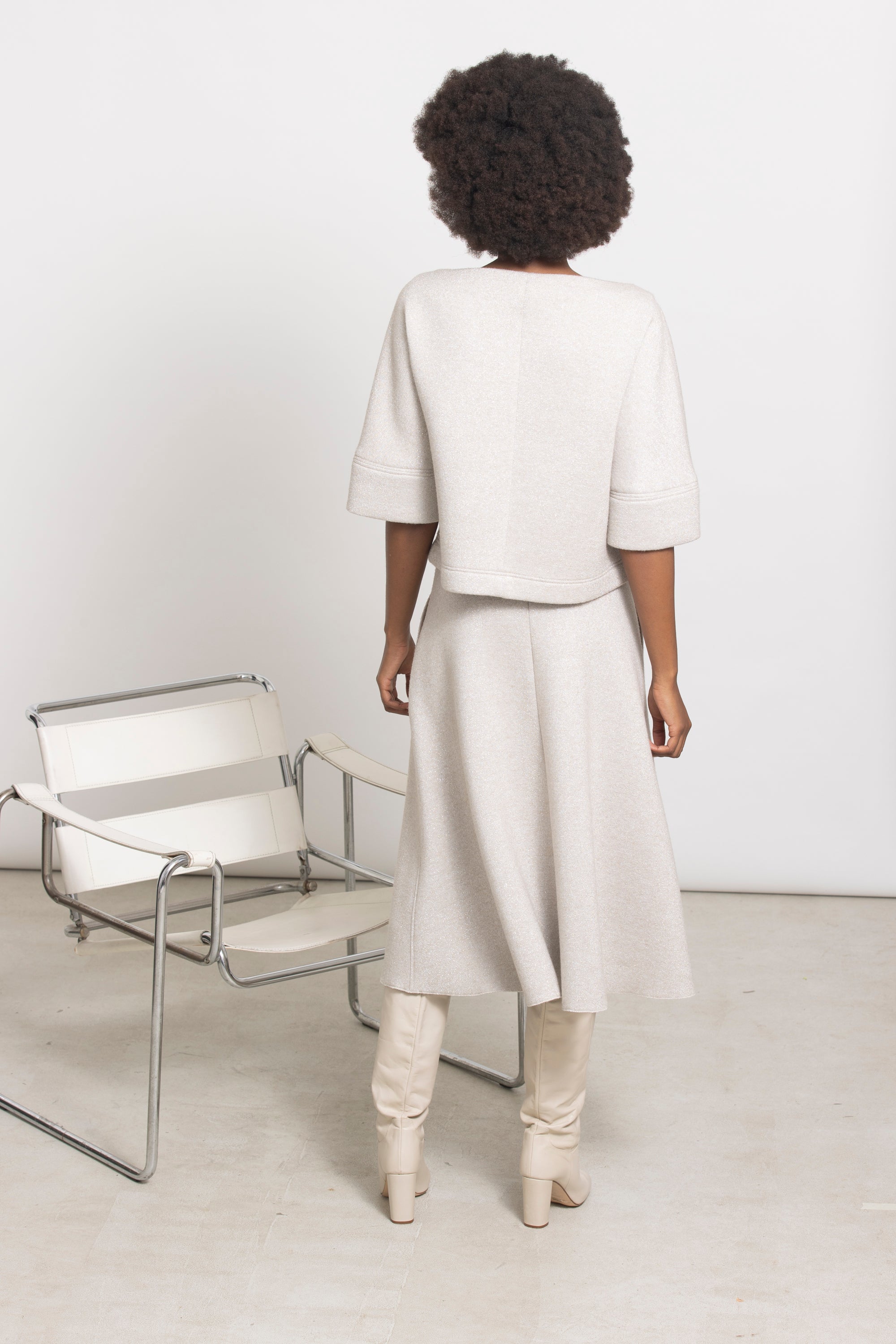 Top in glanzende scuba lurex die moeiteloos op zichzelf staat, maar ook perfect combineert met de bijpassende rok TUBA voor een moderne total look. Comfortabel, stijlvol en met een subtiele stretch voor een flatterende pasvorm.