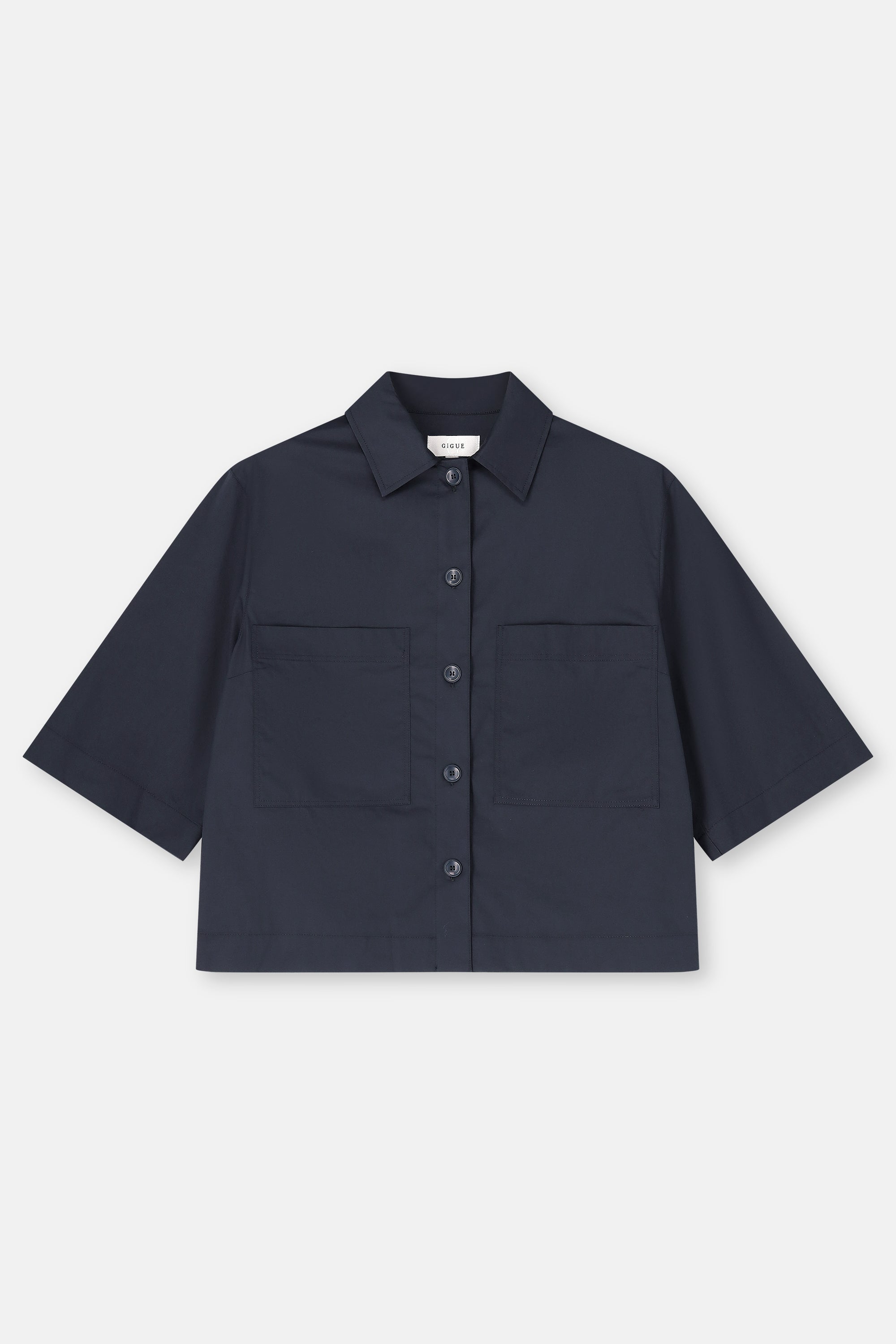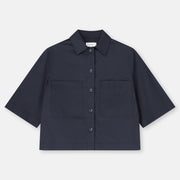 Boxy volume voor dit neutrale hemd/vestje in krakend katoen. Minimalistisch en grafisch, met een moderne proportie. Mooi in total look met bijpassende broek of rok, maar even sterk op zichzelf.