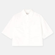 Boxy volume voor dit neutrale hemd/vestje in krakend katoen. Minimalistisch en grafisch, met een moderne proportie. Mooi in total look met bijpassende broek of rok, maar even sterk op zichzelf.