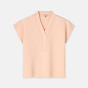 Zwaardere tuniektrui in soepele viscose-rib met boxy volume. Afgewerkt met een elegante, gebreide bies langs de V-hals voor een verfijnd accent.