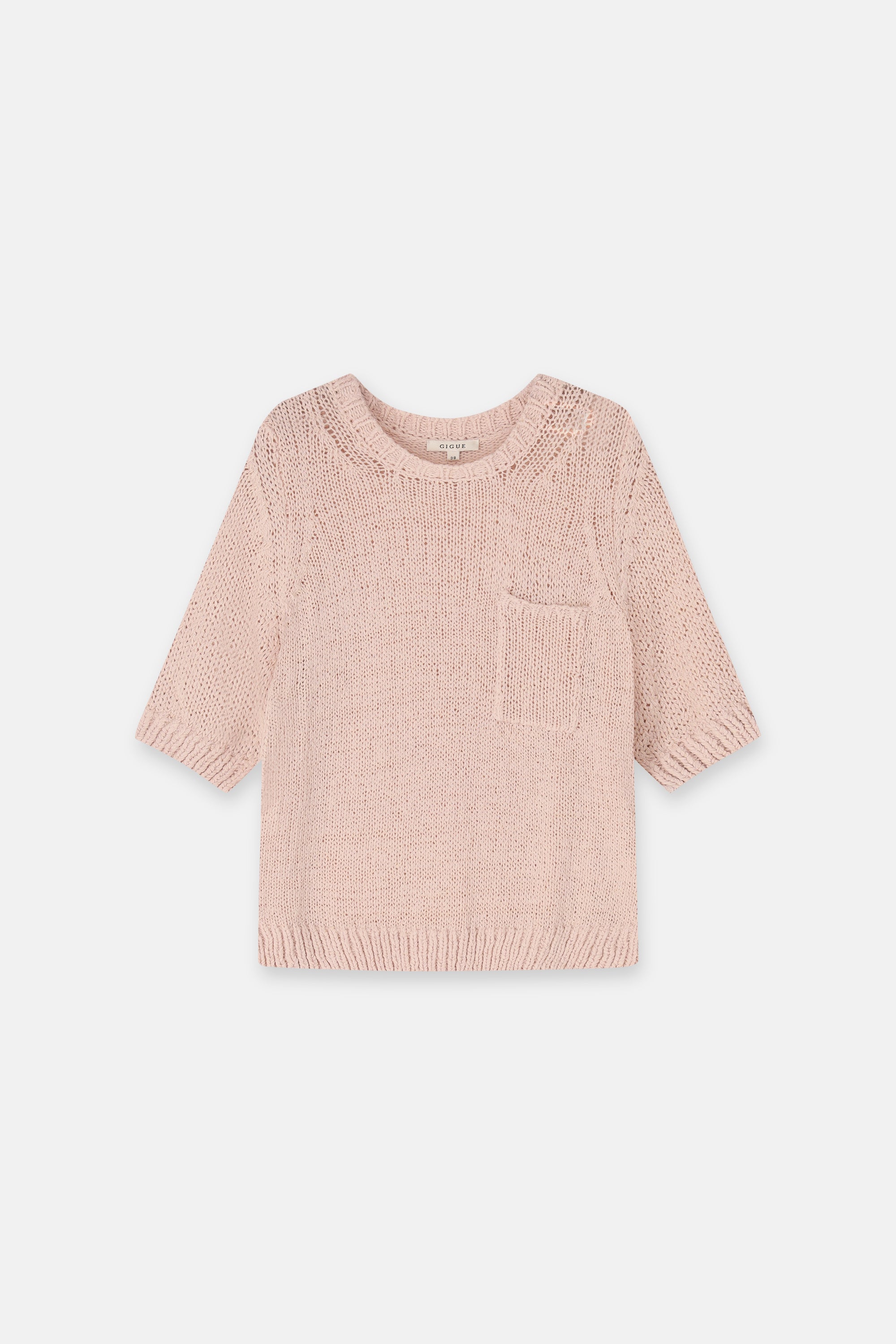 Luchtig gebreid t-shirt met een moderne, relaxte uitstraling. De fijne katoendraad en cleane vorm maken dit een verfijnd stuk voor warmere dagen.