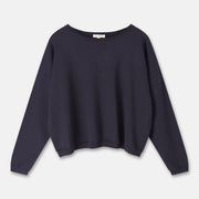 Basic trui met een nieuw, modern volume. LAURI valt breed en iets korter op het lichaam, met een smallere mouw voor balans. Gemaakt in een aangename viscose die soepel aanvoelt en mooi valt.