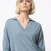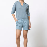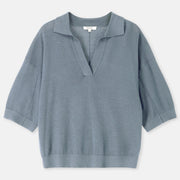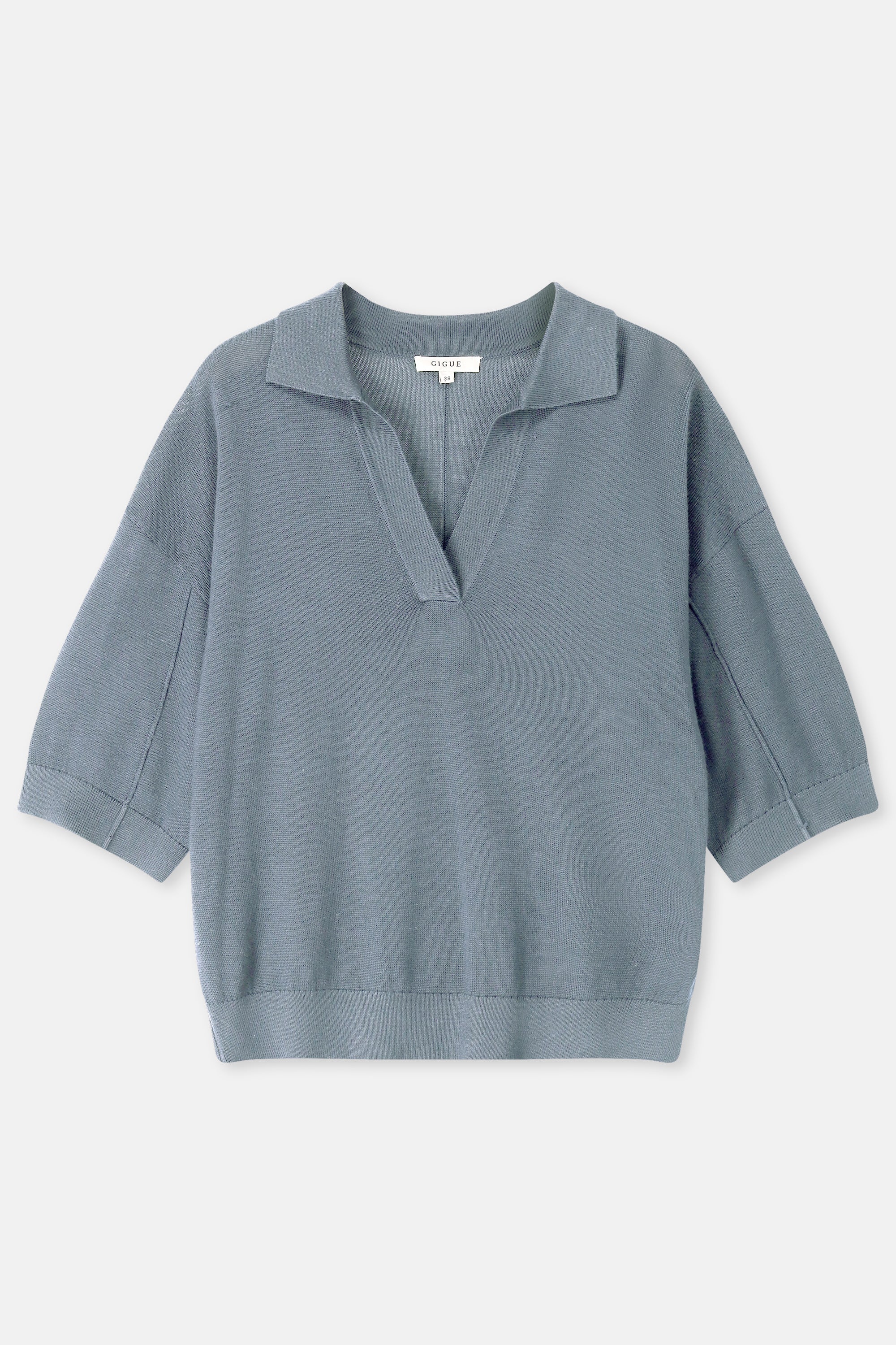 Oversized maar toch vrouwelijke en elegante polo met korte mouwen, uitgevoerd in prachtig soepelvallende merino. Licht, verfijnd en moeiteloos draagbaar.