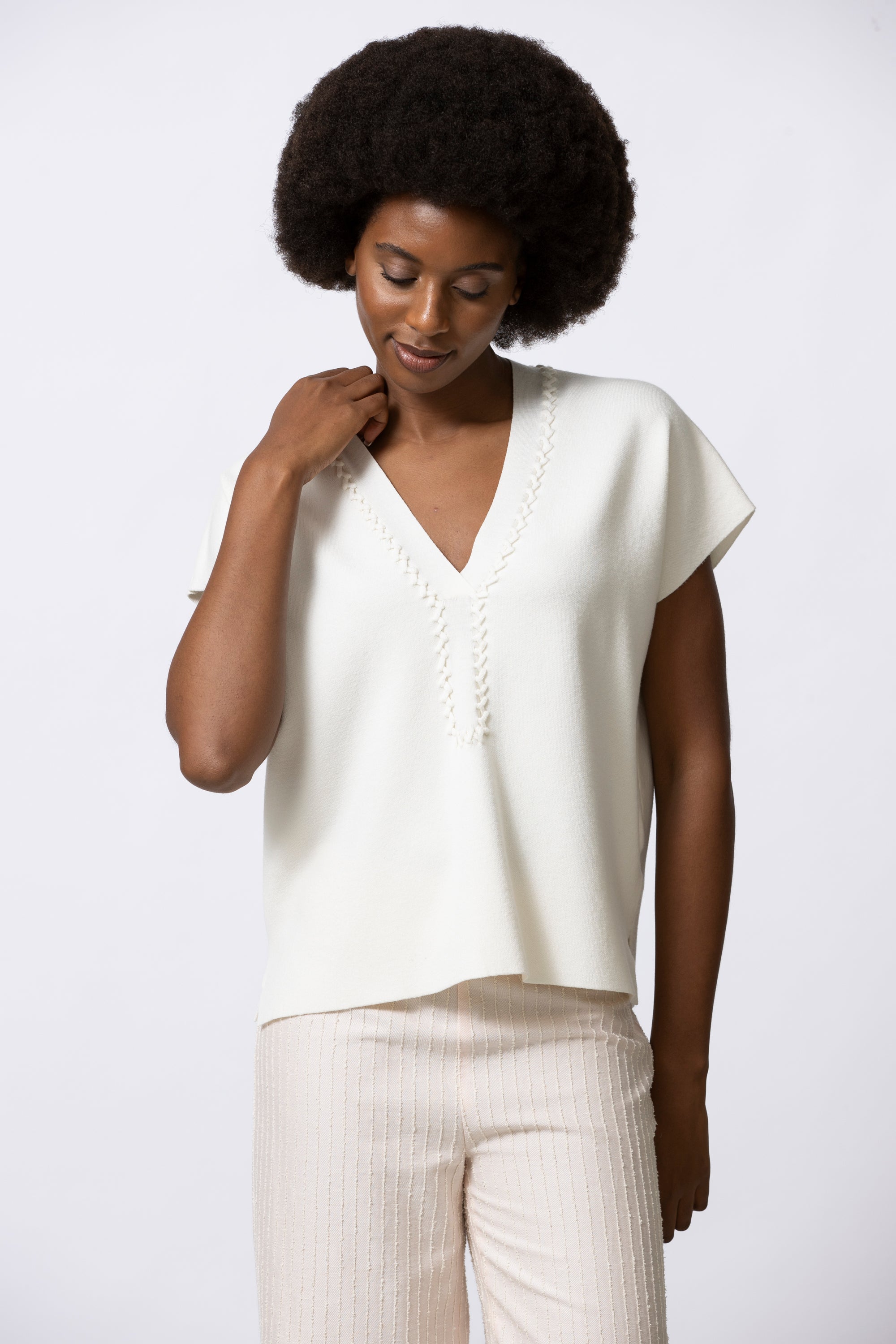 • V-hals met gebreide afwerking