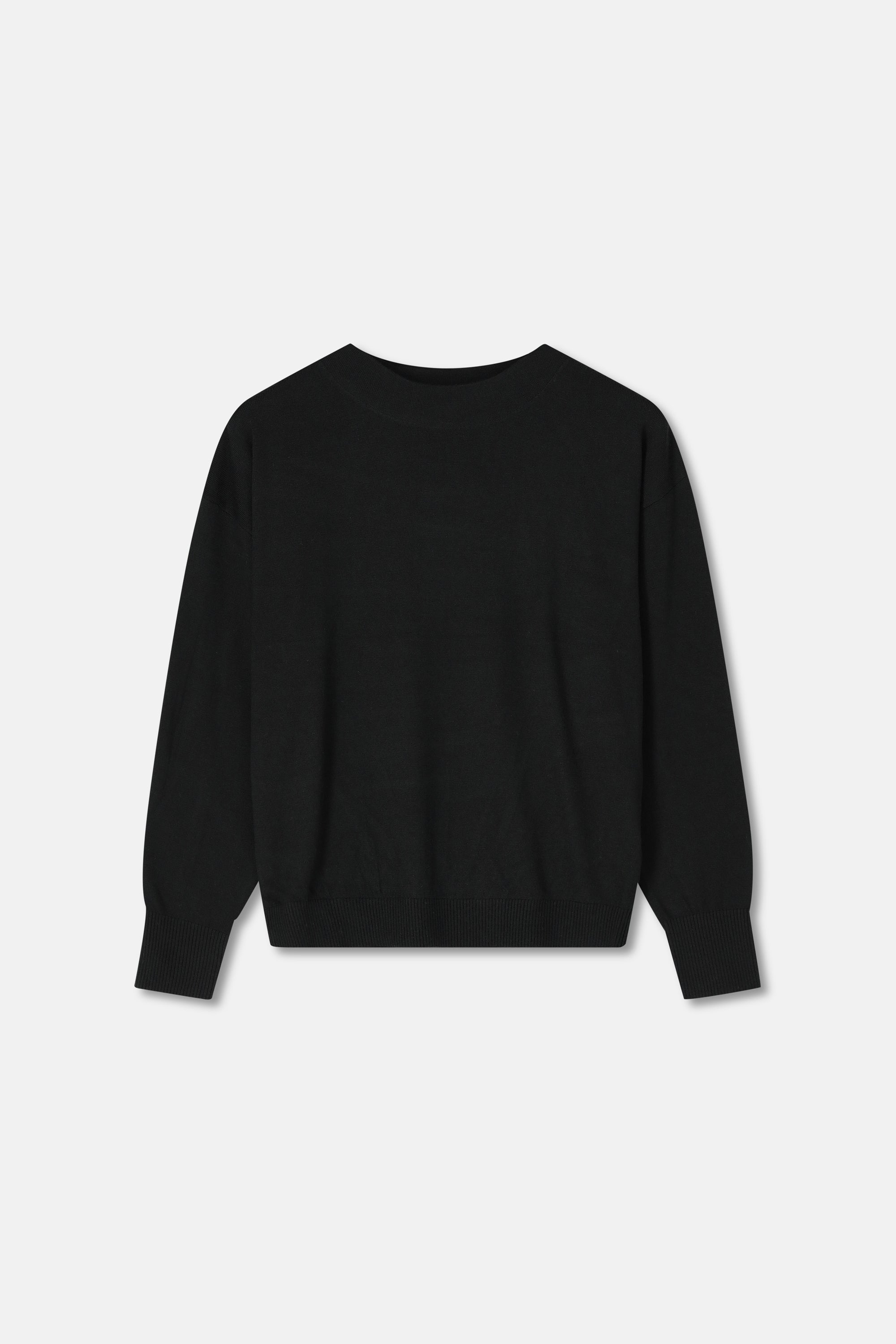 Het basic zwart truitje dat je altijd zocht: breed, boxy, dun en vrouwelijk truitje met eenvoudige ronde hals vooraan, plooi achteraaan. Tijdloos.