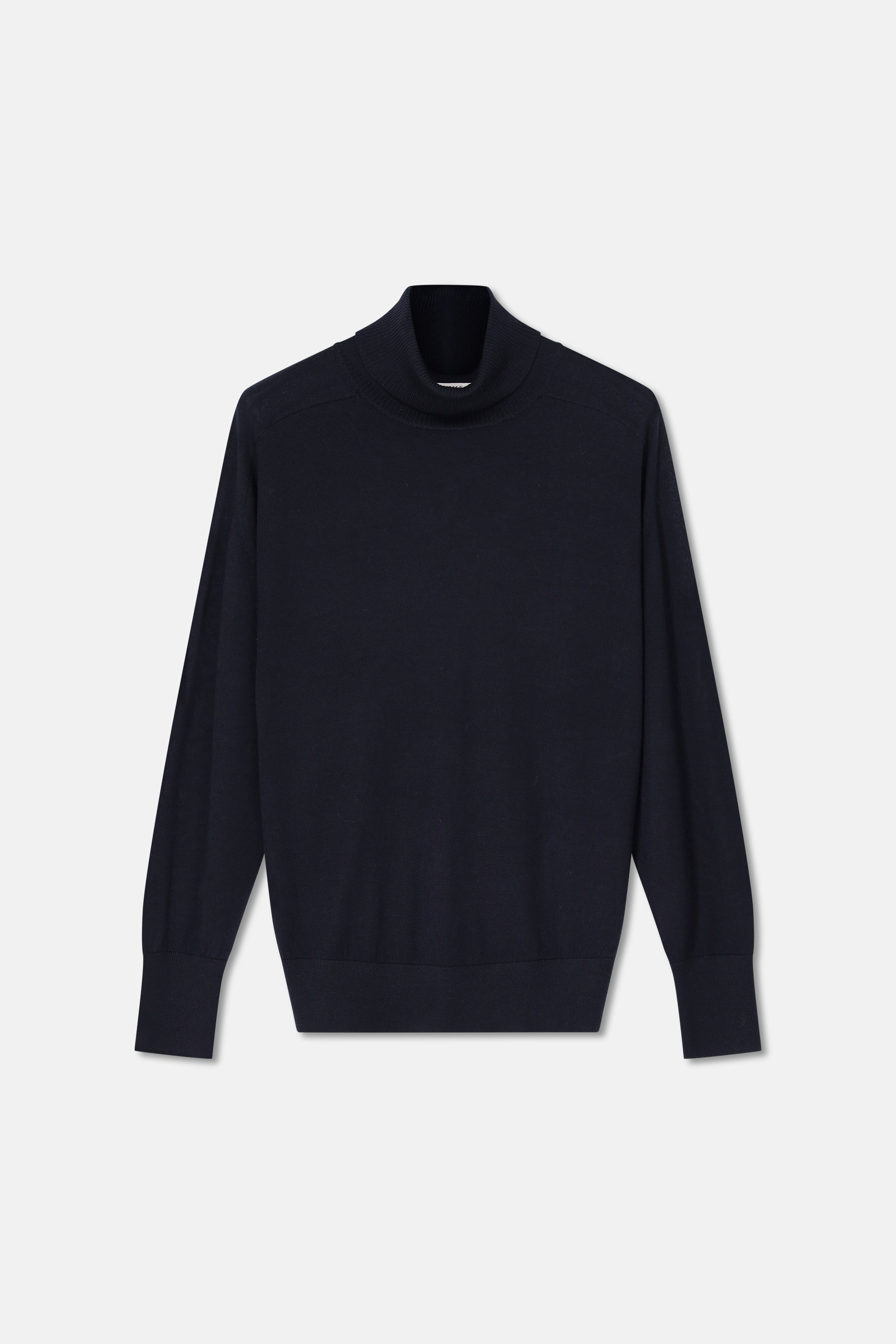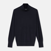 De navy rolkraag is een essential in elke garderobe. Draagbaar onder én op alles. Gemaakt in een fijne merinomengeling met soepelvallende valling en subtiele glans. Licht, comfortabel en vrouwelijk , een veelzijdige laag voor elke dag.