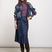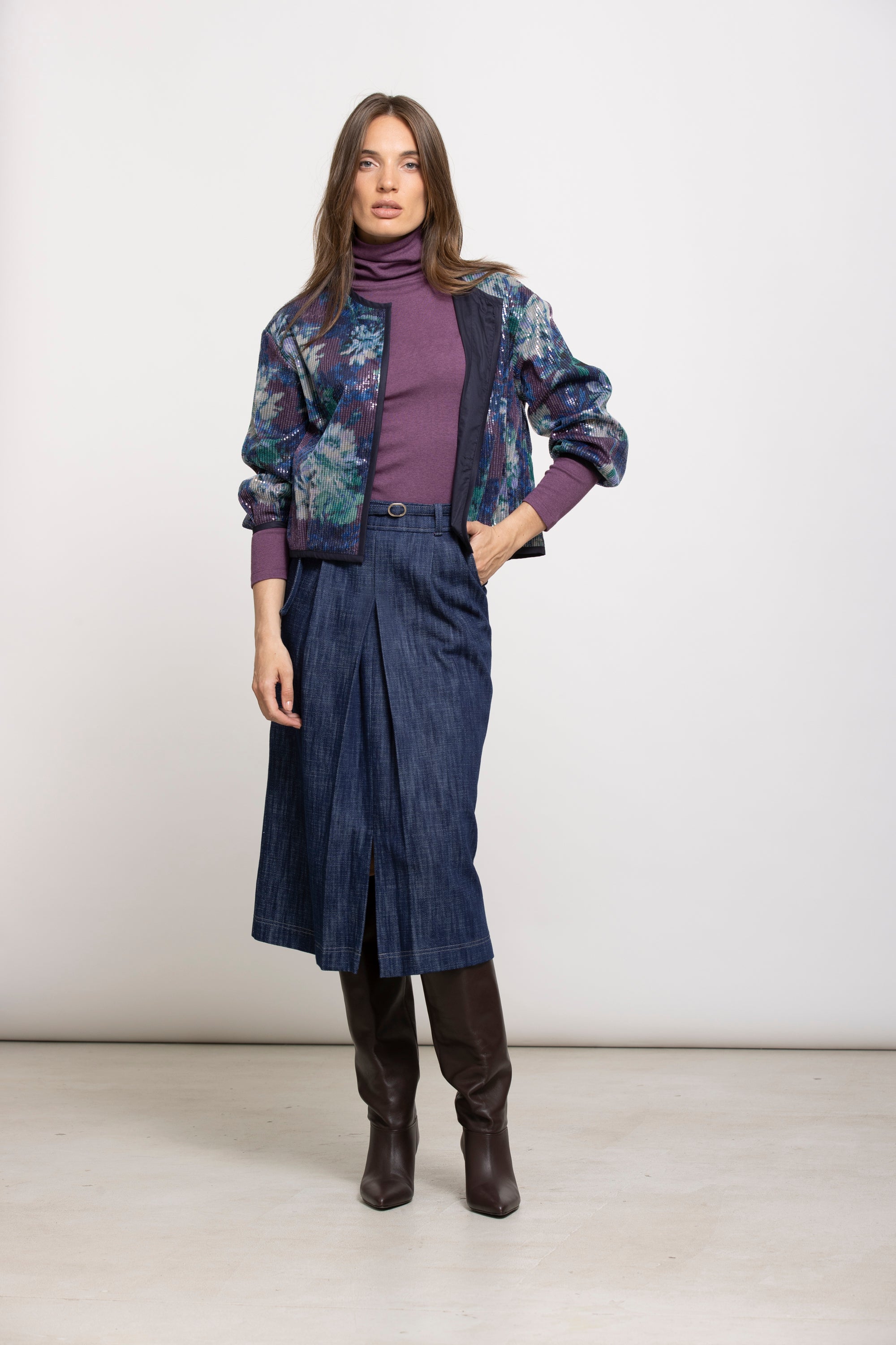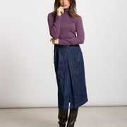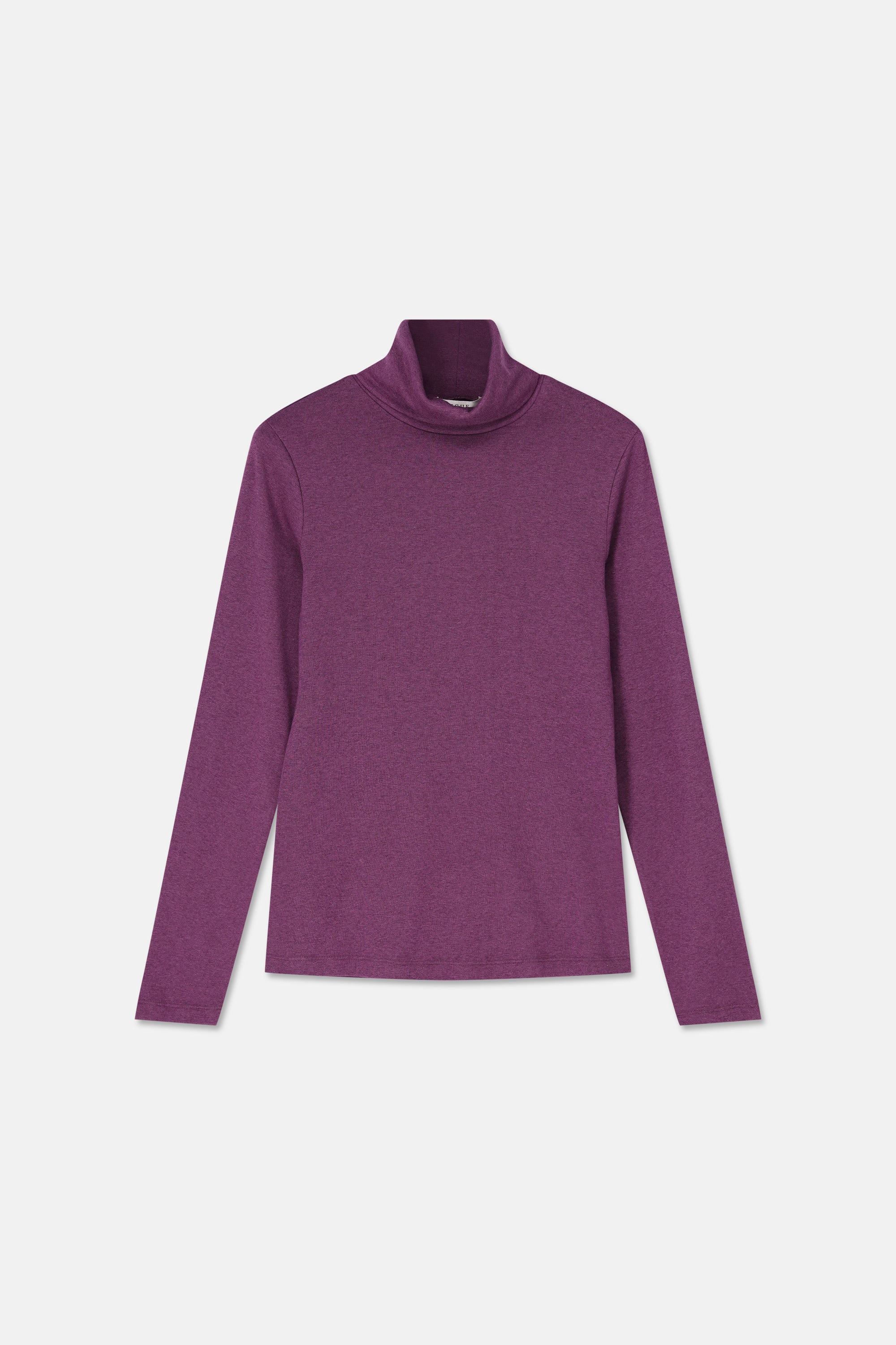 De Gigue sous-pull in mooie mengeling van wol en katoen is warm, makkelijk en zacht. In bordeaux zo mooi en stijlvol dat je hem niet moet wegstoppen! Het model is 1m79 en draagt maat 36.