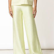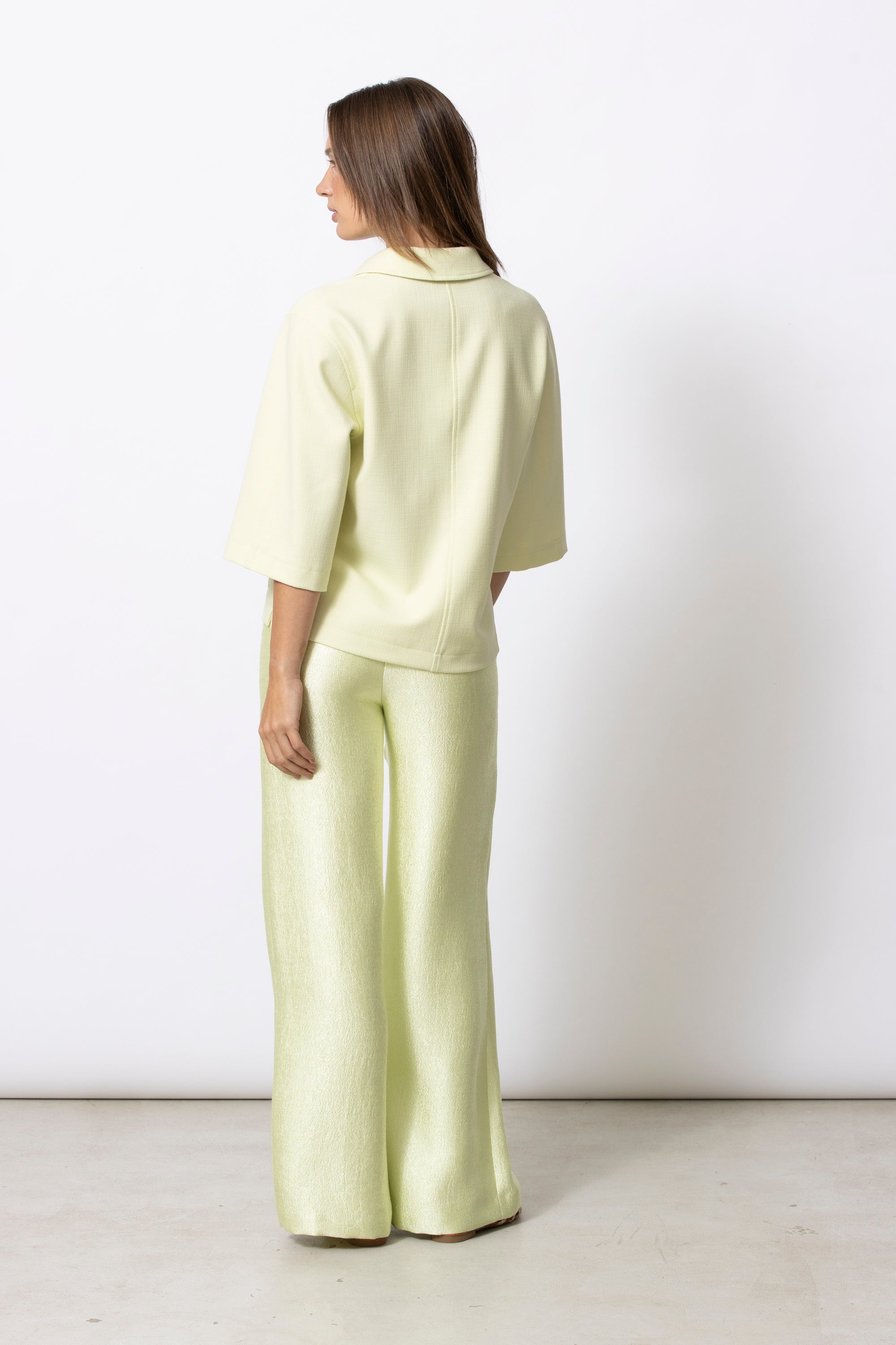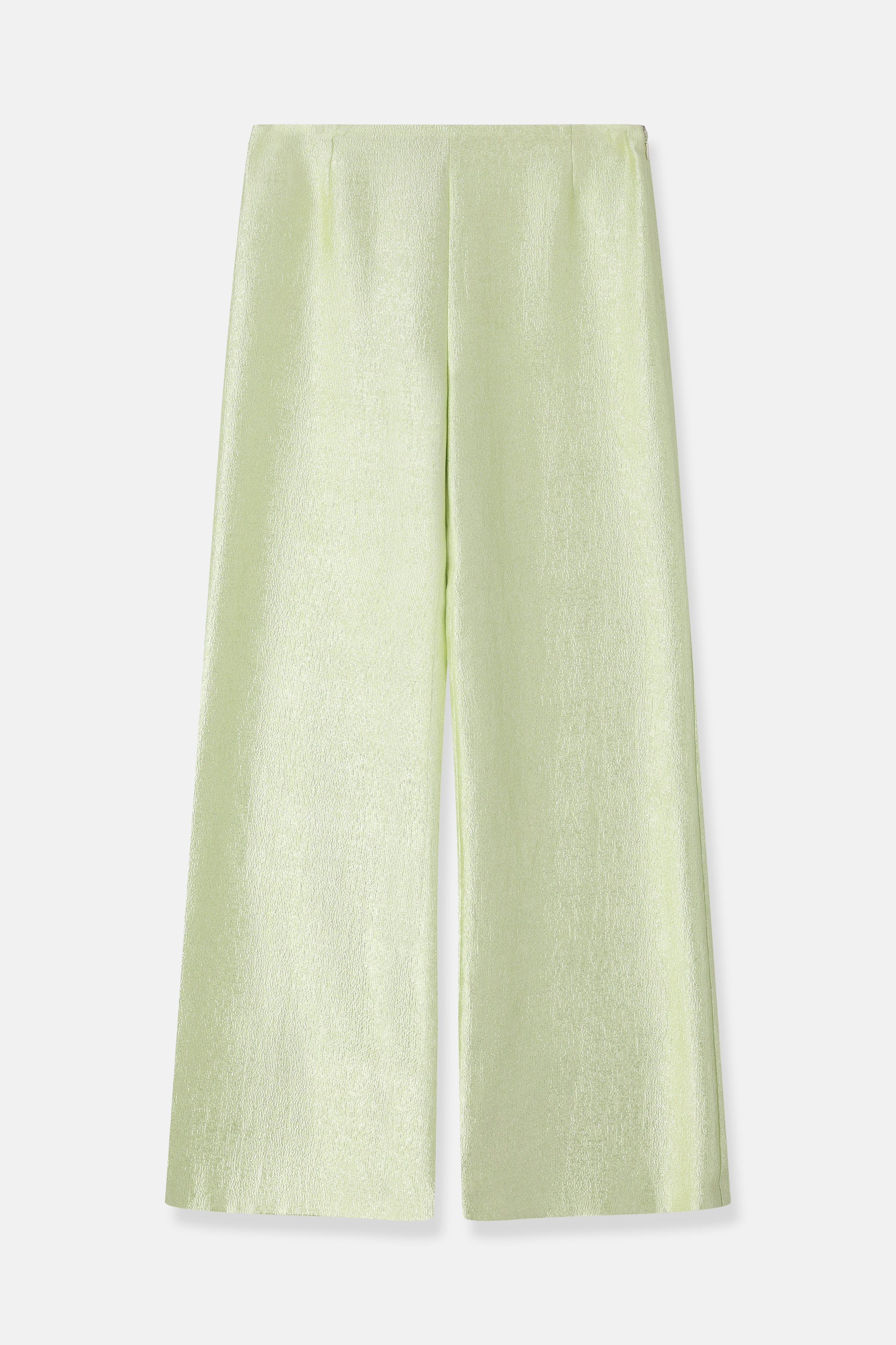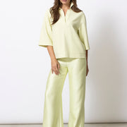 The same clean cut, translated into a bold fluo yellow tone. Straight, fluid and elegant, with a subtle sheen that enhances movement. Finished with an invisible side zip for a sharp, contemporary look. Wear with the matching top or style as a statement piece.