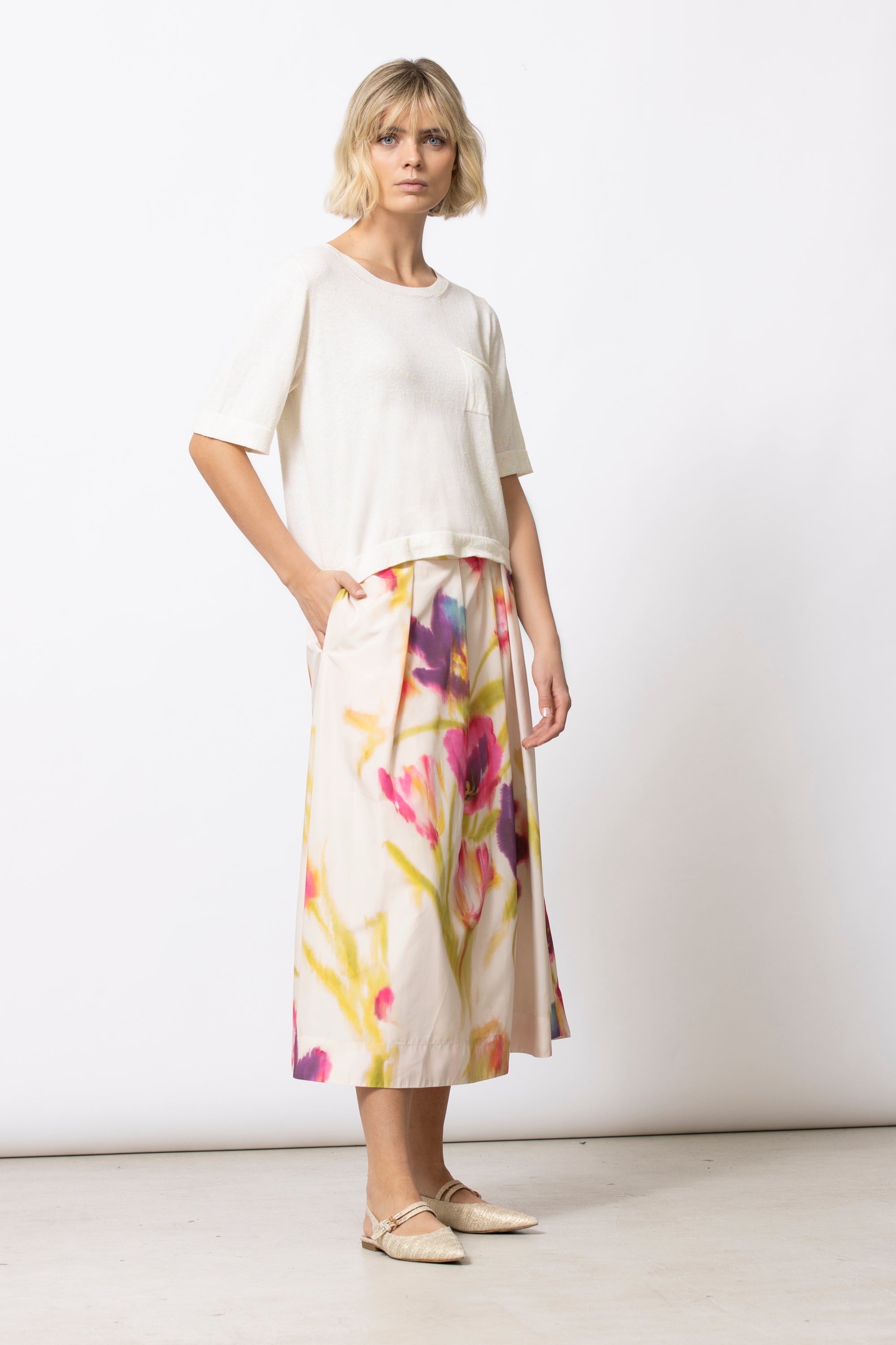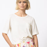 T-shirt tricoté frais et épuré, à la coupe droite et au volume confortable.