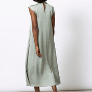 Robe longue et sans manches en satin doux à la brillance subtile. Le col montant et les poches côtés apportent une élégance moderne et maîtrisée. La coupe fluide et droite accompagne le mouvement, idéale pour les journées chaudes et les soirées d’été.