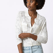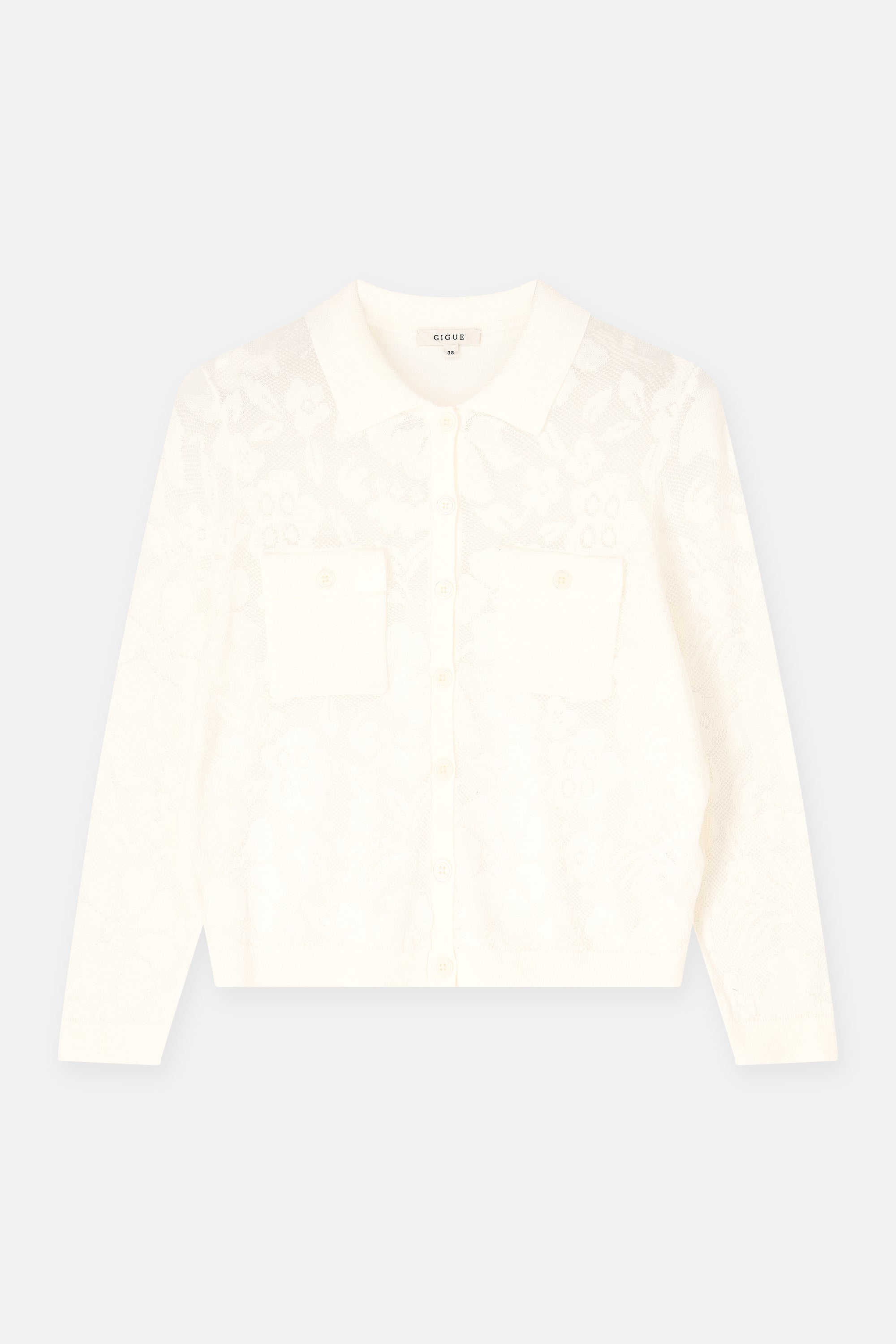 Met deze lace-gebreide trui-cardigan speel je moeiteloos in op de kant-trend. De combinatie van transparantie, knoopsluiting en polokraag geeft dit item een vrouwelijke, eigentijdse uitstraling. Draag hem rechtstreeks op de huid of gelaagd over een top voor een nonchalante, chique look.