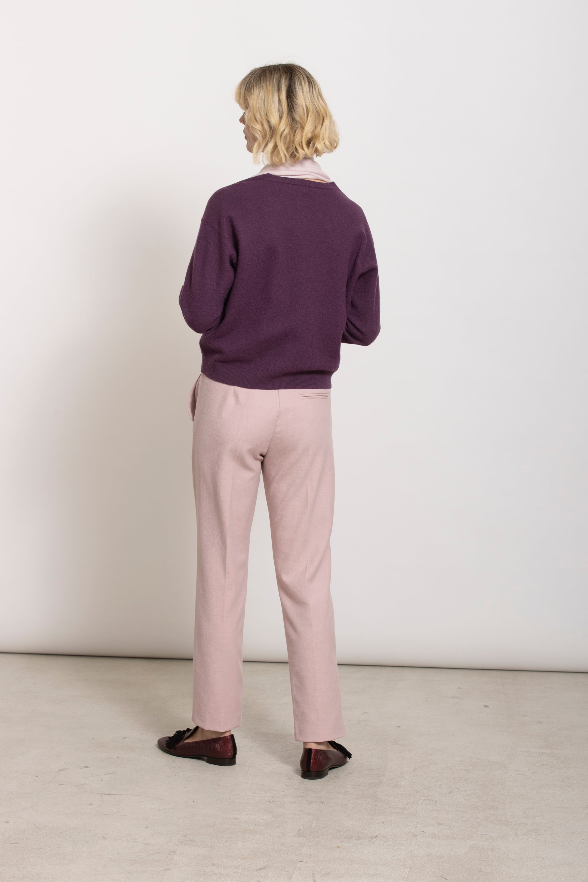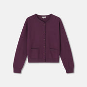 Cardigan in 100% merinowol met een eenvoudige, licht boxy snit. Uitgevoerd in zachte boiled wool in warm bordeaux, met twee zakjes vooraan. Draag je los op de huid of als laagje – tijdloos, comfortabel en stijlvol.