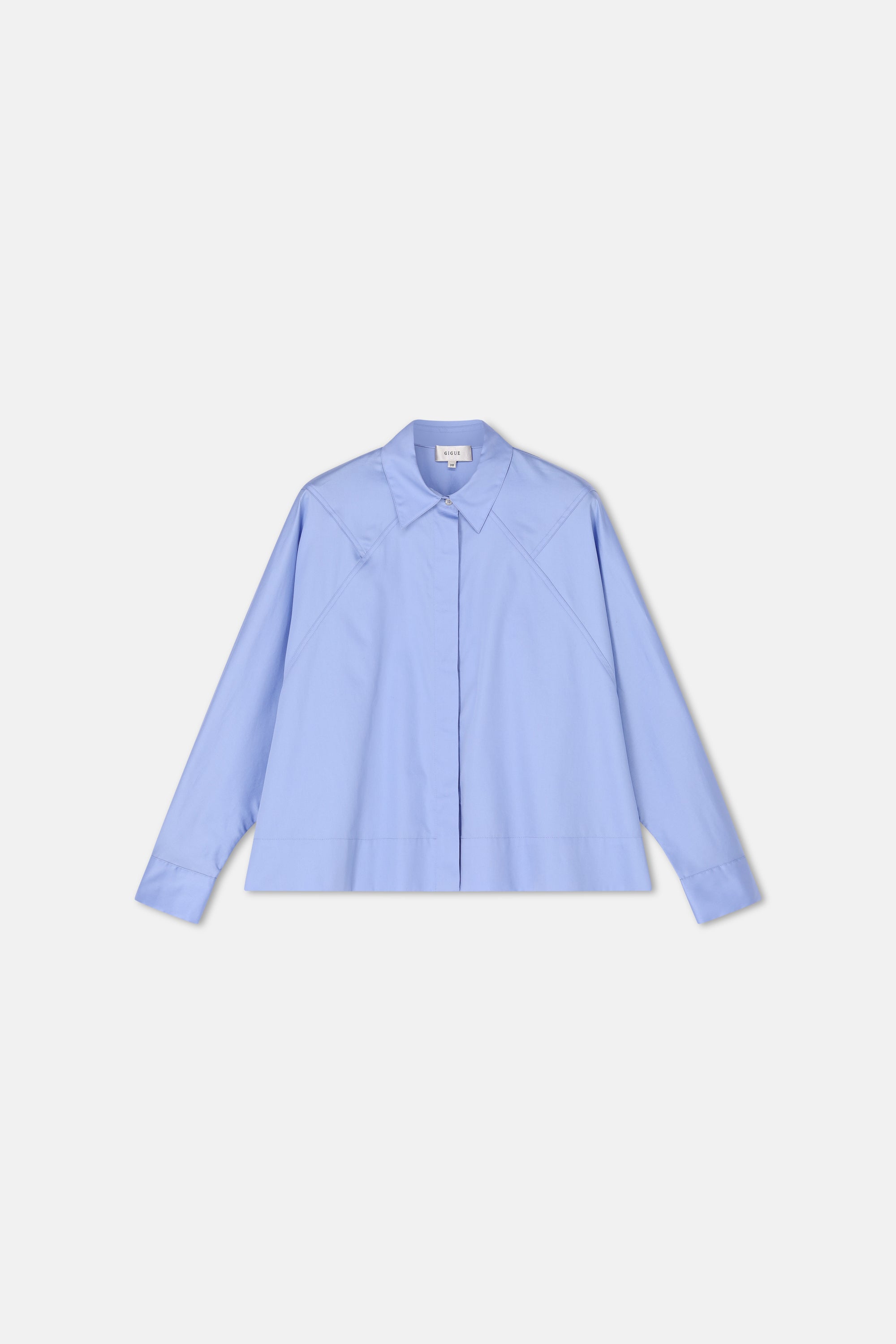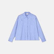 Super wijde en boxy shape voor deze korte lichtblauwe bloes. Originele en heel comfortabele snit, trendy oversized Past altijd en overal!