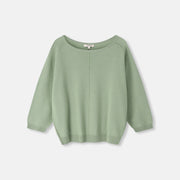 De Layla is een zachte, verfijndekaki knit. Het mooie volume, de open hals en de subtiele stikking vooraan geven deze trui een ontspannen maar verzorgde uitstraling. Dankzij de wol met cashmere voelt ze uitzonderlijk zacht aan en draagt ze licht en comfortabel.