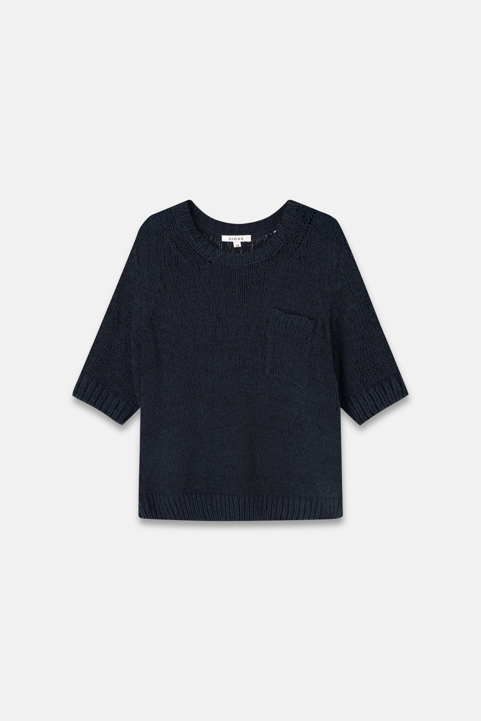 Luchtig gebreid t-shirt met een moderne, relaxte uitstraling. De fijne katoendraad en cleane vorm maken dit een verfijnd stuk voor warmere dagen.