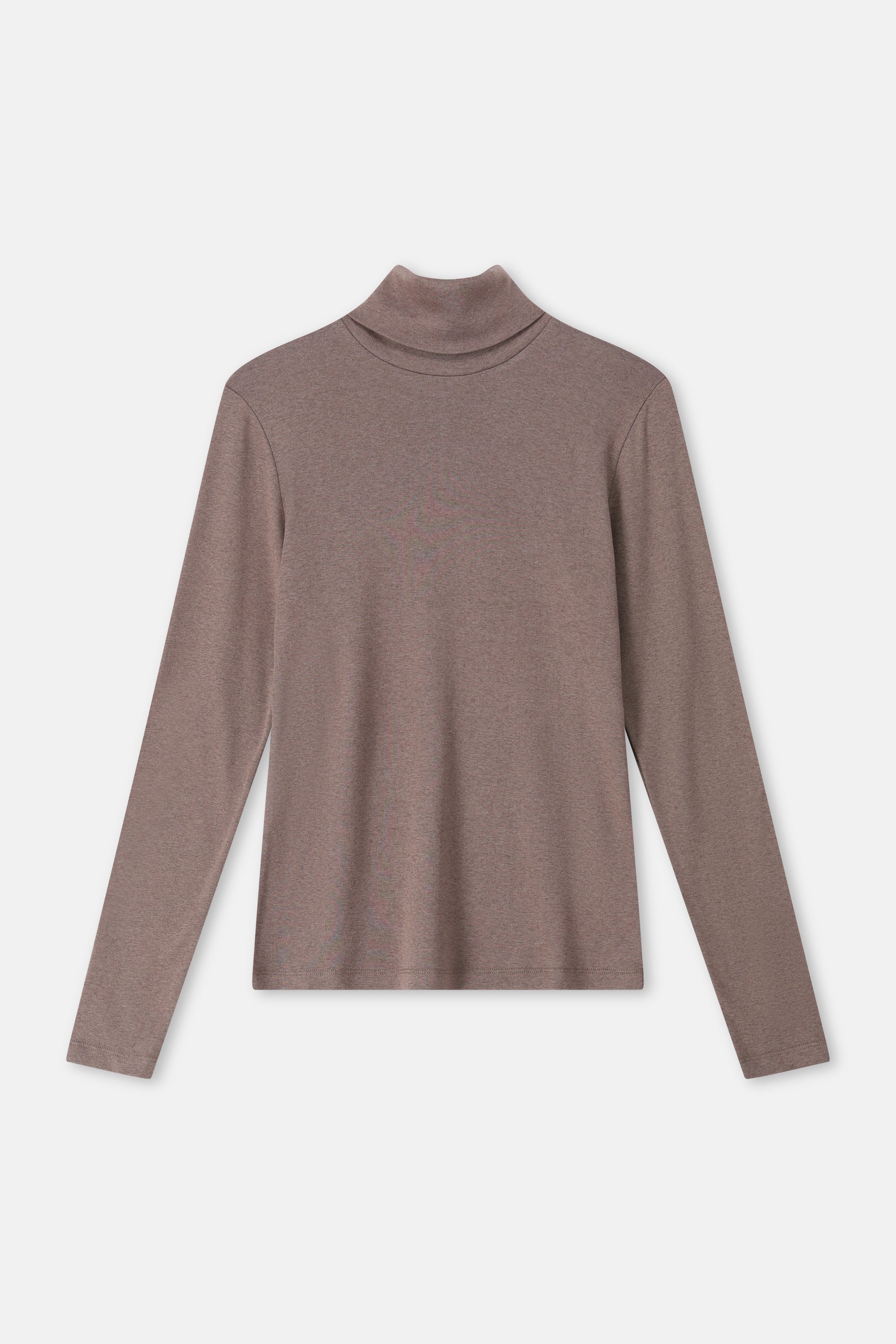 Deze taupe Gigue sous-pull in mooie mengeling van wol en katoen is behalve warm, makkelijk en zacht ook zo mooi en stijlvol dat je hem niet moet wegstoppen!